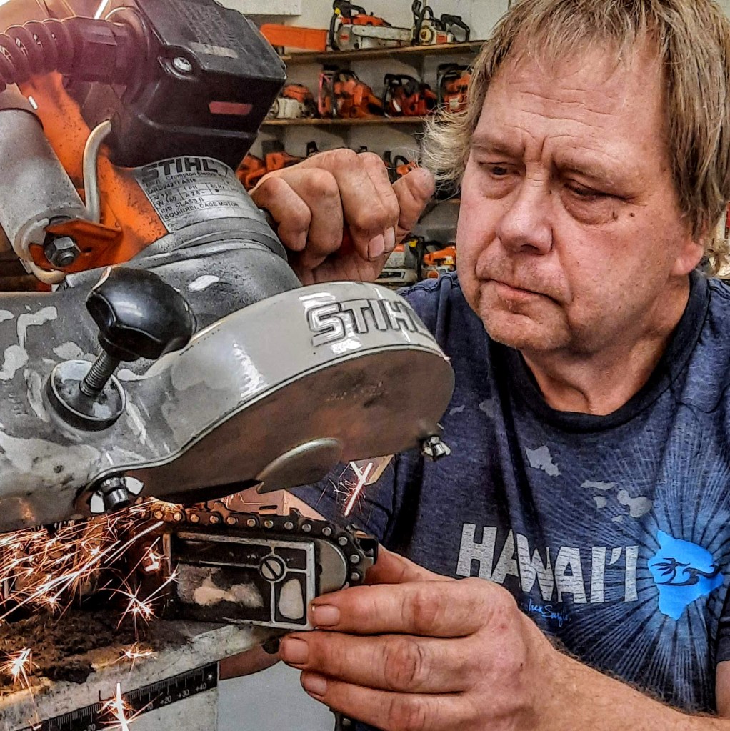 Cutting with a dull chain makes both you and your saw work harder. Let Bob or Jason return your chain to optimal sharpness. This saves wear and tear on the guide bar, the engine, and your back. Dull mower blades create the same heat and friction problems that wear your mower Engine out faster. Let us help keep you sharp and productive.